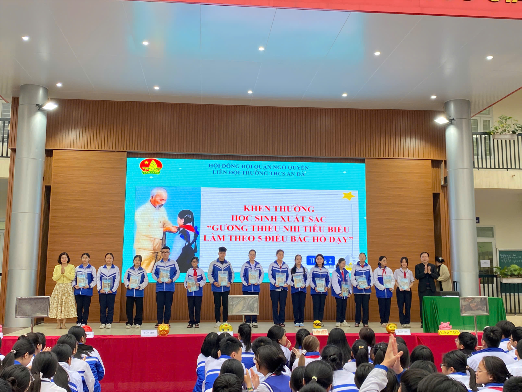 Cũng trong chương trình, Liên đội đã vinh danh những tấm gương tiêu biểu trong học tập và rèn luyện, trao giấy chứng nhận tấm lòng vàng cho học sinh tích cực nhiệt tình hưởng ứng cuộc vận động “Góp những đồng tiền nhỏ vì nghĩa tình lớn, tặng quà đầu xuân giúp bạn nghèo và nạn nhân chất độc màu da cam” xuân Ất Tỵ 2025 góp phần lan tỏa phong trào thi đua sôi nổi trong nhà trường.