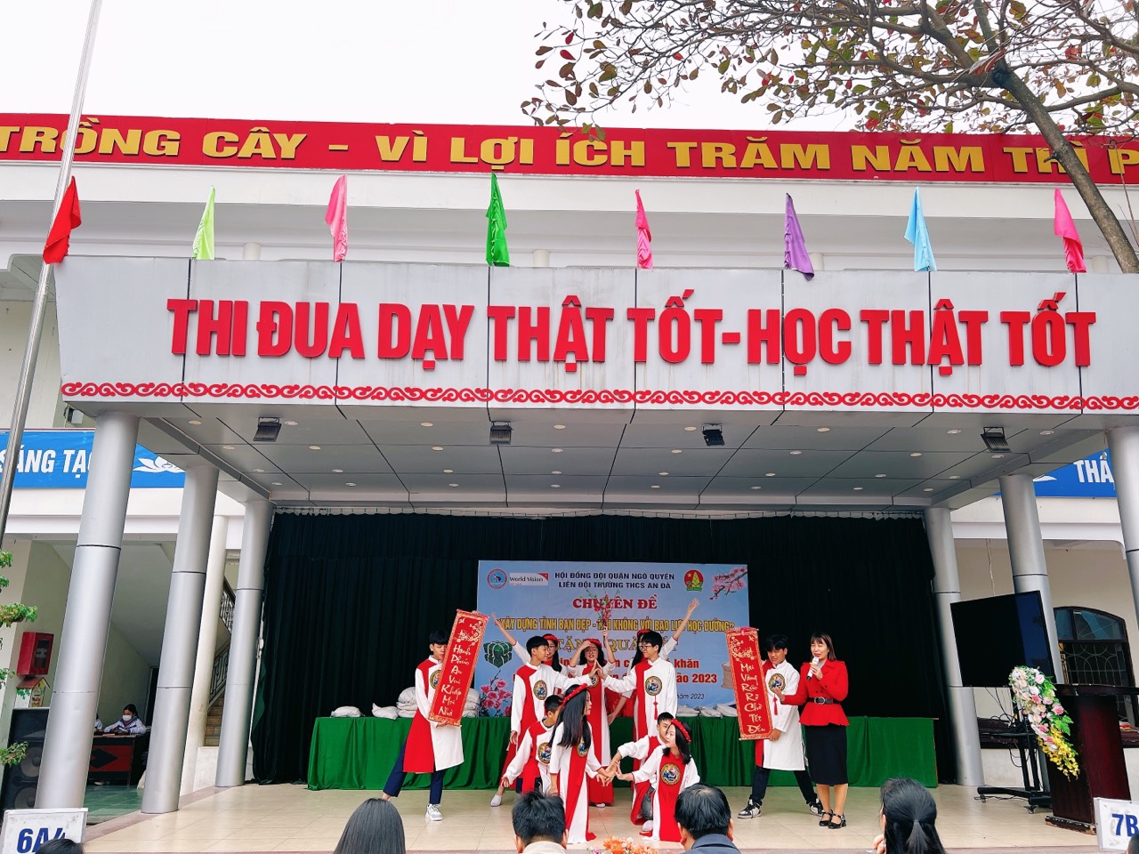 Nhằm giúp các em học sinh hiểu và có kĩ năng phòng tránh bạo lực học đường, giúp các em học sinh “Xây dựng tình bạn đẹp- nói không với bạo lực học đường” và giúp các em học sinh có hoàn cảnh khó khăn có một Tết thật đầm ấm, yên vui, sáng ngày 9/1 trường THCS An Đà long trọng tổ chức chuyên đề “Xây dựng tình bạn đẹp – Nói không với bạo lực học đường” và tặng quà Tết học sinh có hoàn cảnh khó khăn nhân dịp Tết Nguyên Đán Quỹ Mão năm 2023