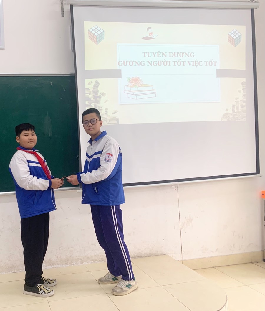 tháng 2, Liên đội tuyên dương em Vũ Tùng Khánh lớp 6A1 đã nhặt được tiền tại lớp
