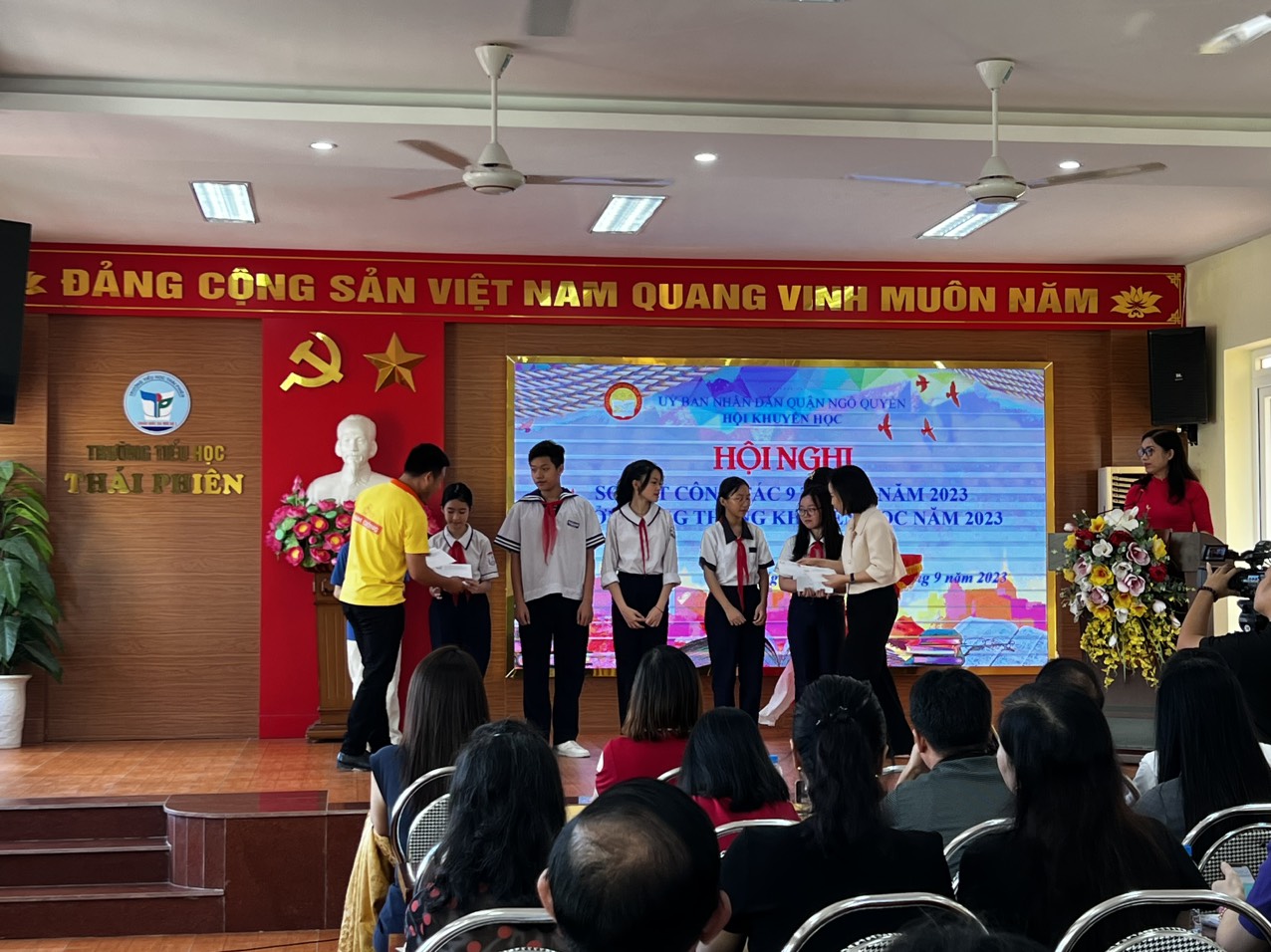 Trong chương trình, nhà trường có em Đinh Thị Thảo Linh lớp 7B4 đã được nhận học bổng trị giá 500.000đ do Quỹ khuyến học quận tài trợ.