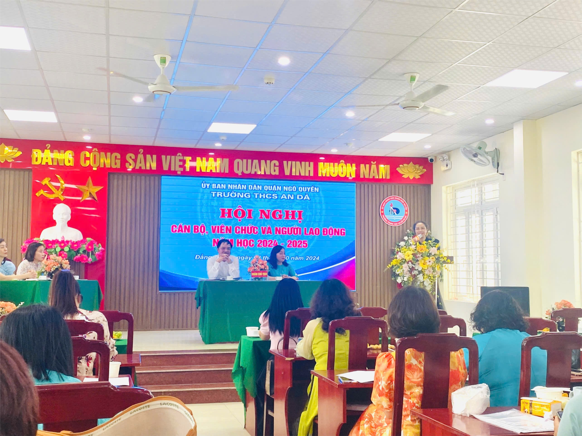 Sau hơn 3 giờ làm việc tích cực, khẩn trương, hội nghị đã đi đến biểu quyết thông qua các chỉ tiêu và giải pháp thực hiện nhiệm vụ năm học. Hội nghị cán bộ, viên chức, người lao động năm học 2024 – 2025 đã khép lại, trang sách của năm học mới đã mở ra. Hơn bao giờ hết, mỗi cán bộ viên chức, người lao động nhà trường THCS An Đà càng hiểu rõ trách nhiệm chính trị vô cùng vẻ vang của mình trong sự nghiệp “trồng người” và sẽ tâm huyết nỗ lực hoàn thành xuất sắc nhiệm vụ.