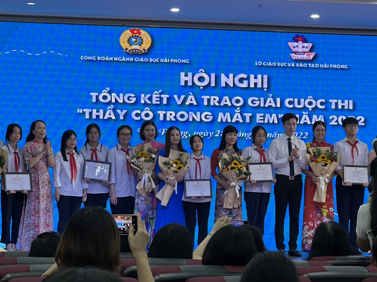 Cuộc thi “Thầy cô trong mắt em” được phát động từ tháng 5.2022 đến tháng 8.2022. Qua 3 tháng, Ban tổ chức đã nhận được 112 tác phẩm dự thi được chọn từ 900 tác phẩm từ phía các trường THPT, các phòng Giáo dục và các trường THCS. Rất vinh dự, trường THCS An Đà đã có 1 tác phẩm được lựa chọn và giành giải Khuyến khích cấp thành phố. Xin chúc mừng nhóm tác giả: em Trần Bảo Việt Phương, Đặng Thùy Linh, Nguyễn Hải Huyền Thư lớp 9D5 với bài dự thi “Thanh xuân tuyệt vời bên cô”viết về cô giáo dạy môn Ngữ văn, đồng thời là cô giáo chủ nhiệm lớp 9D5: cô giáo Vũ Thị Bích Hòa.