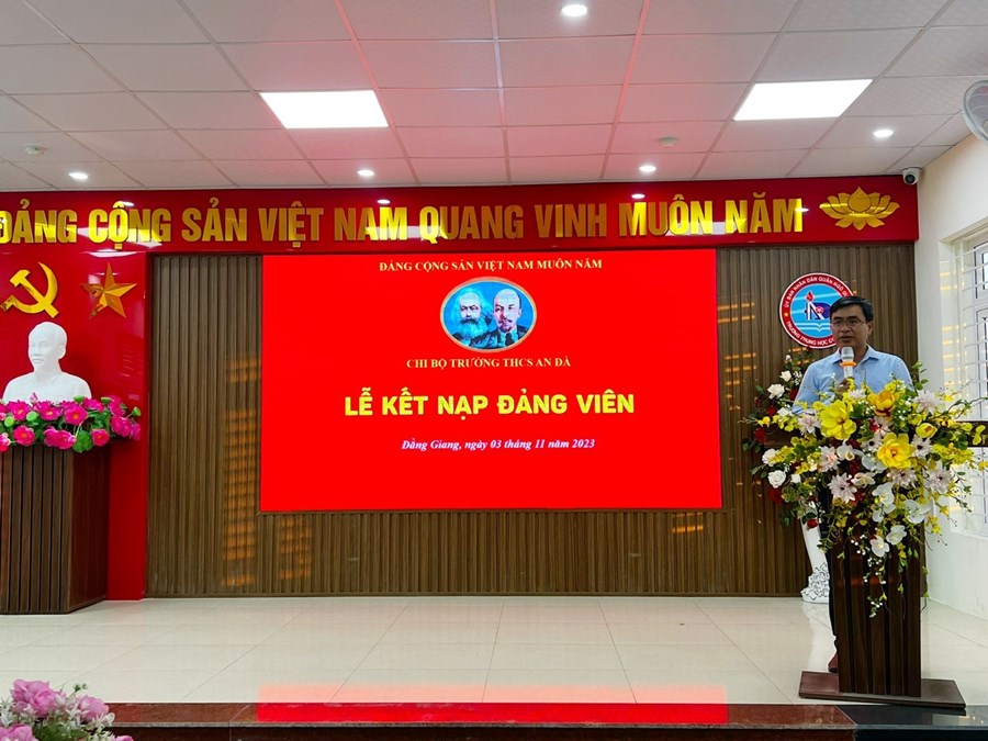 Trong buổi lễ kết nạp Đảng viên mới, Chi bộ trường THCS An Đà rất vinh dự đón tiếp đồng chí Đinh Quang Tấn – Bí thư Đảng uỷ phường Đằng Giang về dự và chỉ đạo. Những động viên của đồng chí Đinh Quang Tấn sẽ là động lực để Chi bộ trường THCS An Đà phấn đấu hoàn thành xuất sắc nhiệm vụ giáo dục trong năm học 2023 – 2024.