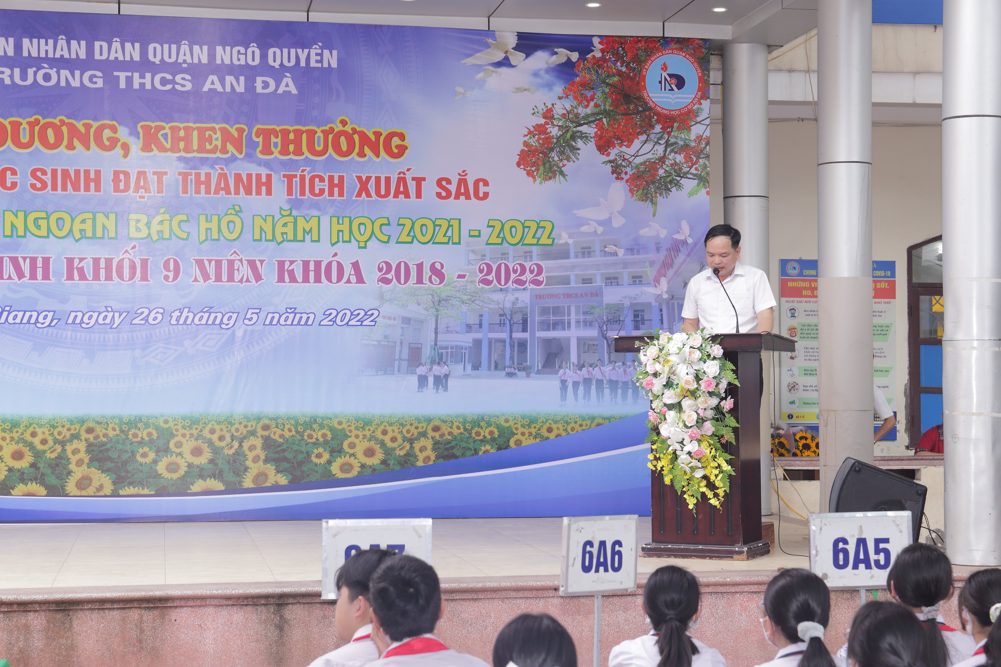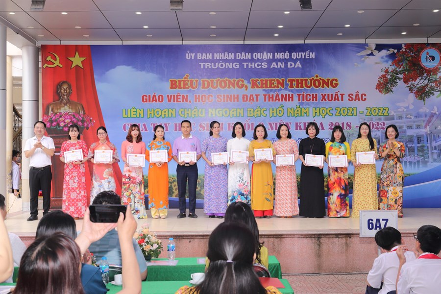 Tại buổi lễ cũng diễn ra chương trình tuyên dương khen thưởng giáo viên và học sinh đạt thành tích xuất sắc, Liên hoan Cháu ngoan Bác Hồ năm học 2021-2022 và lễ ra trường cho học sinh khối 9 niên khóa 2018-2022