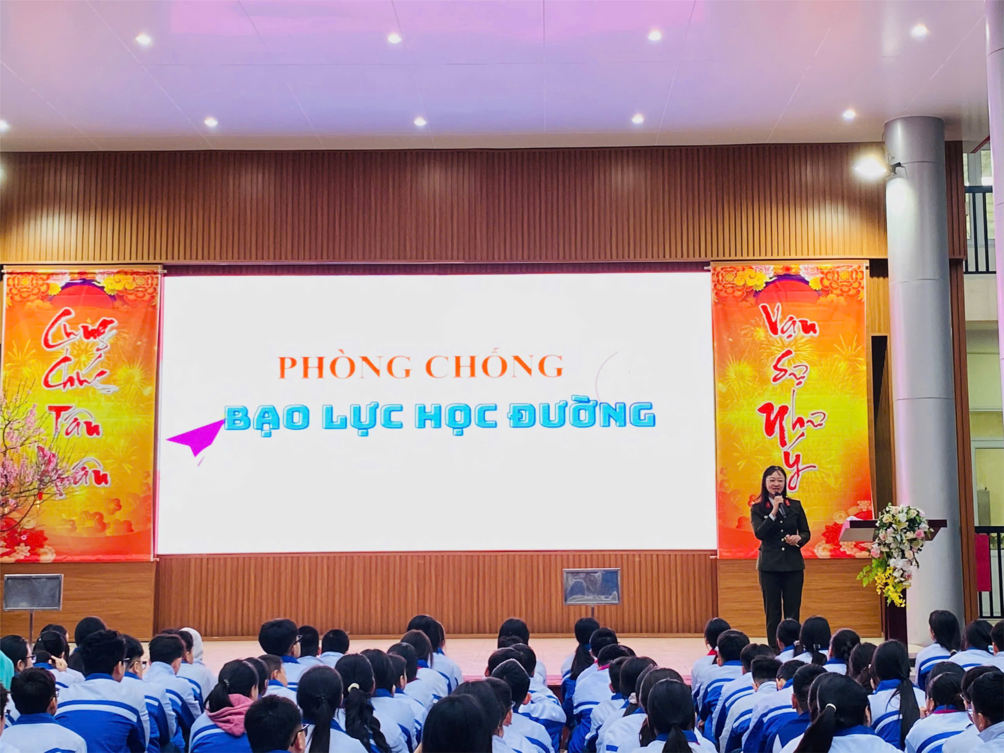 Với phong cách diễn thuyết gần gũi, hóm hỉnh nhưng cũng đầy sâu sắc của một chiến sĩ công an nhân dân, Đại úy Dung đã biến những quy định pháp luật khô khan thành những bài học dễ hiểu, dễ nhớ, thu hút sự chú ý của toàn thể học sinh.