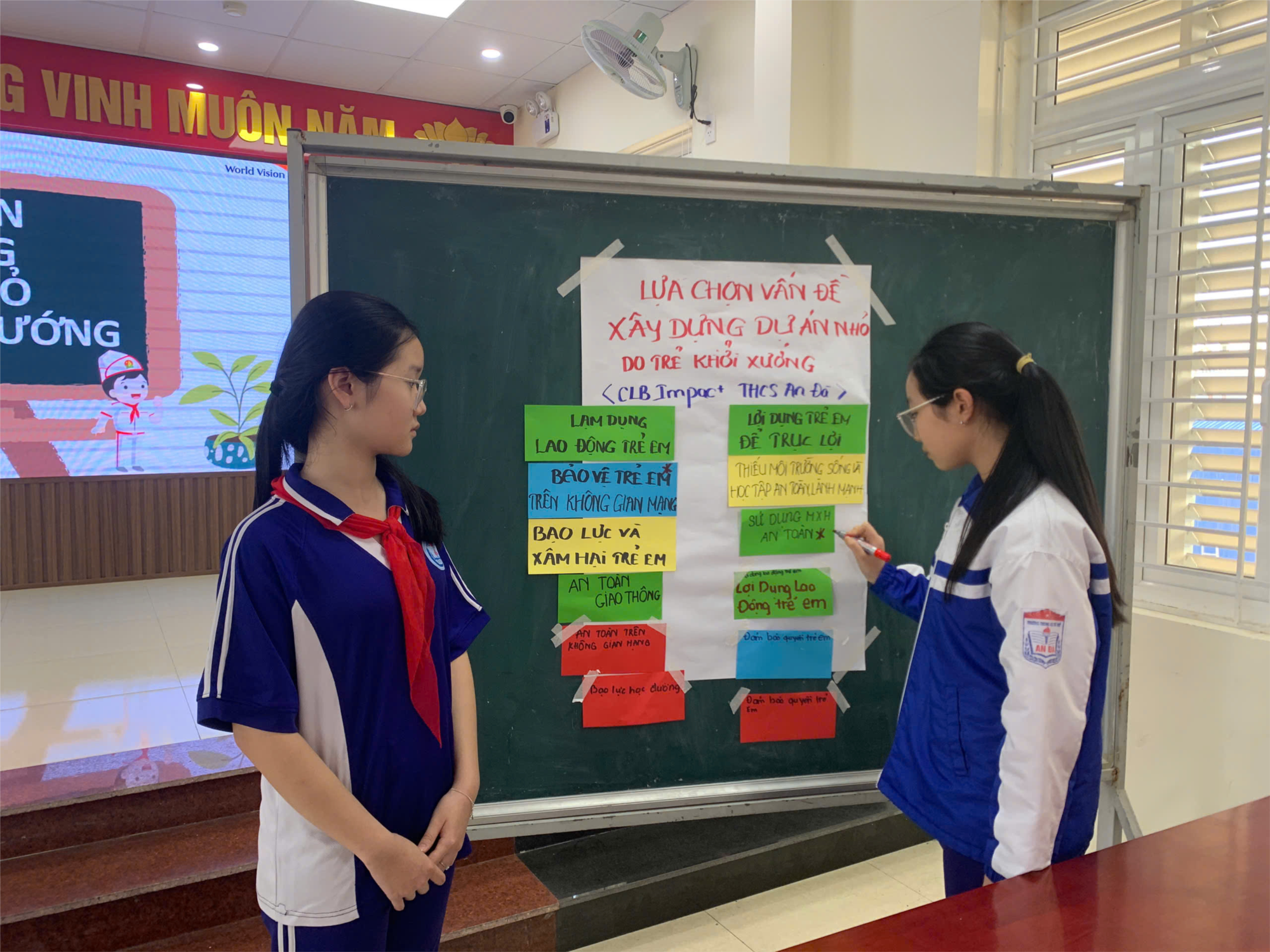 Tiếp nối chương trình là hoạt động thảo luận nhóm về các vấn đề liên quan đến trẻ em hiện nay như: bạo lực học đường, xâm hại trẻ em, an toàn giao thông, và an toàn trên không gian mạng. Với tinh thần thẳng thắn, cởi mở, các em đã chia sẻ quan điểm cá nhân, nêu ra những tình huống thực tế và cùng nhau tìm giải pháp xử lý, phòng tránh. Hoạt động không chỉ giúp các em nâng cao nhận thức, kỹ năng sống mà còn khuyến khích các em mạnh dạn đề xuất những sáng kiến nhỏ do trẻ khởi xướng, nhằm góp phần xây dựng môi trường học đường an toàn, thân thiện, tích cực.