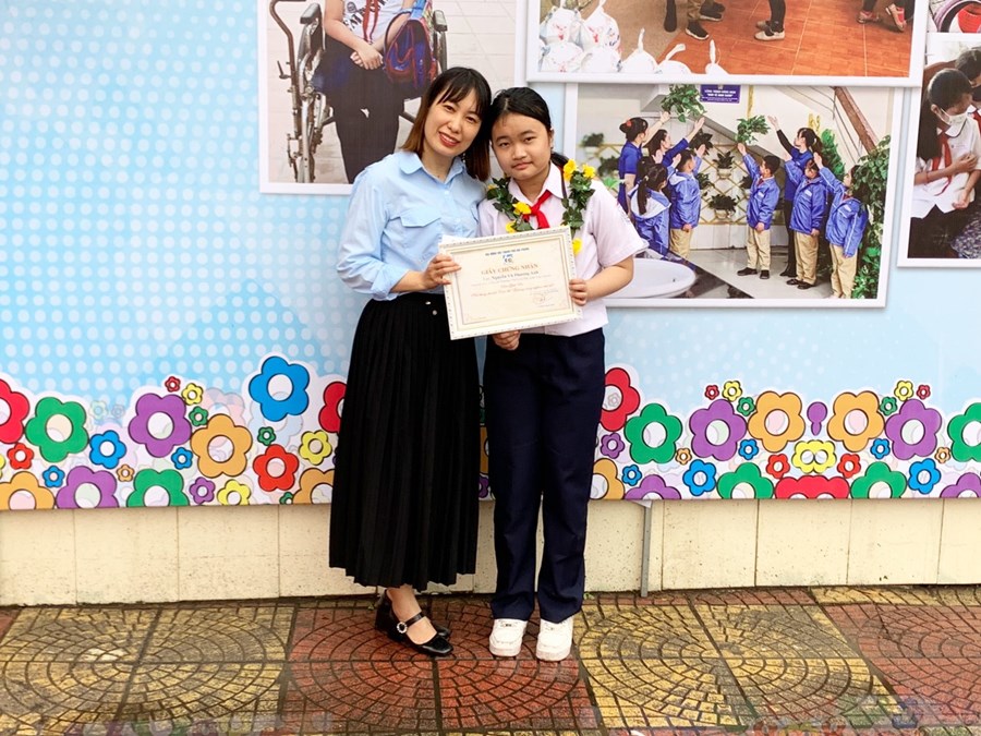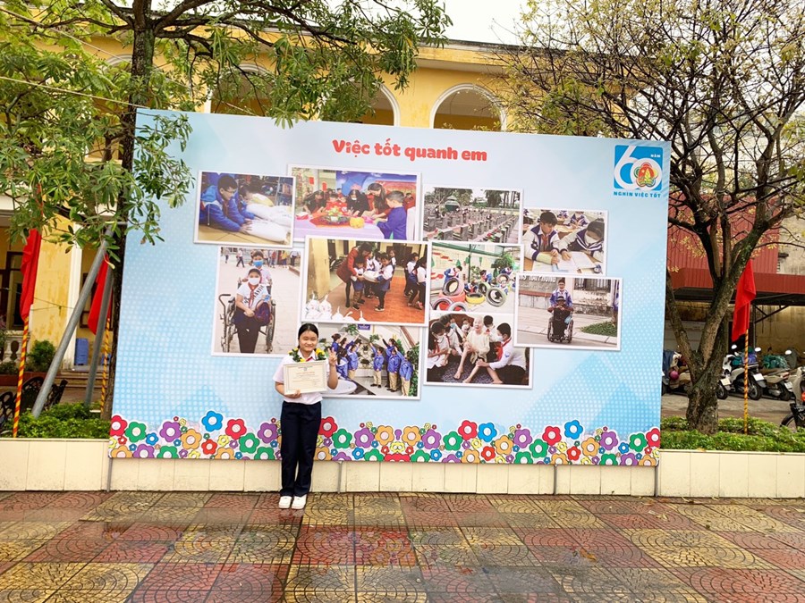 Kết quả, em Nguyễn Vũ Phương Anh lớp 6A1 đã đạt giải ba cấp thành phố phần thi viết "Gương sáng nghìn việc tốt"