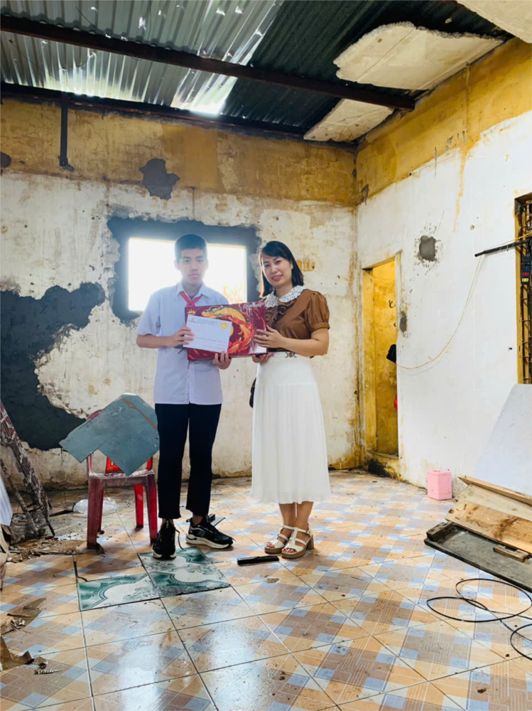 Đặc biệt, em Lê Giang Phong lớp 8C4 được Thành đoàn và nhà tài trợ hỗ trợ tặng quà và 15 triệu đồng để sửa nhà do tốc toàn bộ mái tôn, không có nơi sinh hoạt và học tập.