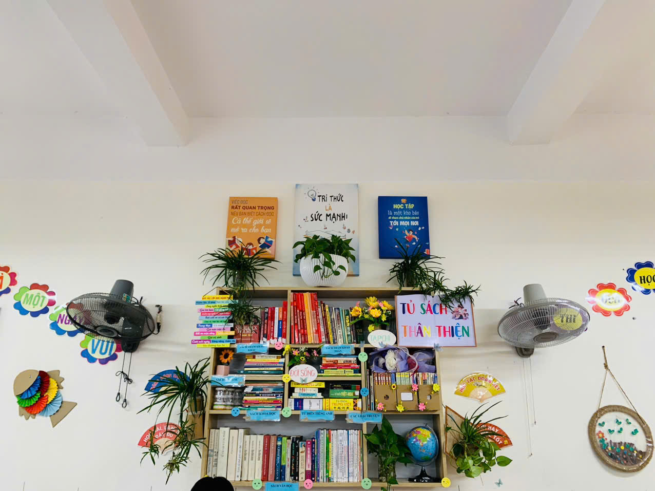 Hưởng ứng hoạt động, các bạn học sinh đã nhiệt tình tham gia bằng cách quyên góp sách để làm phong phú thêm các tủ sách lớp học. Mỗi cuốn sách là một nguồn tri thức quý giá, giúp các bạn mở rộng hiểu biết và nuôi dưỡng niềm đam mê học tập. Bên cạnh đó, hoạt động làm sản phẩm tái chế từ những nguyên liệu thân thiện với môi trường đã được các bạn thực hiện với sự sáng tạo độc đáo. Những món đồ tái chế này được dùng để trang trí tủ sách, tạo nên không gian xanh, gần gũi và thân thiện hơn trong mỗi lớp học.